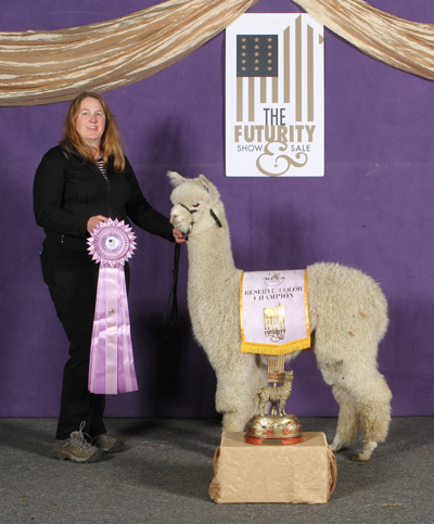 A brief aside: while the AOA National Show has in recent years again raised it’s stature throughout the industry, primarily by wisely positioning itself in the Goldilocks fleece month of March (staple lengths are not too short but not too long either, they are just right), the Futurity remains, at least for now, arguably the most important show on the national alpaca calendar. There is good reason why most of the top breeding programs — of every size — in the country spend thousands of dollars to travel to KC to compete against one another. Simply put, that logo and the reputation that the Futurity’s Breeder and Herdsire of the Year awards carry with them speak for themselves: a legitimate and previously unequaled cachet that has been rightly earned over the past 2 decades. Long may that remain the case.
