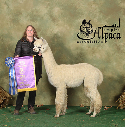 CCNF Rosanna (CCNF Rosalva x CCNF Sucrose) – Champion Light Huacaya Female